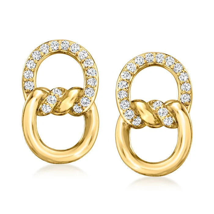 18K Gold Double D Ring Micro Inlaid Zircon Bends And Hitches Stud Earrings