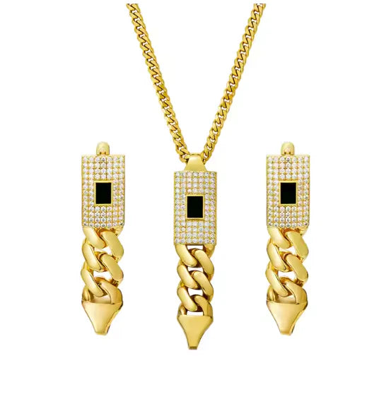 Zircon Cuban Pendant Set