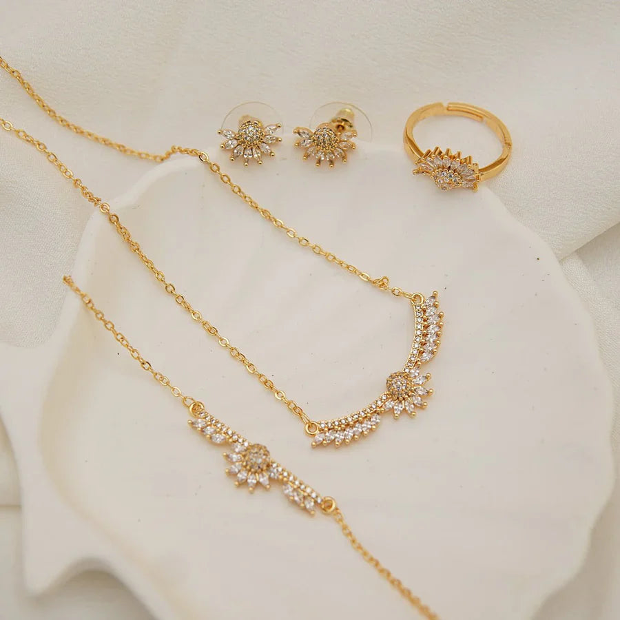 Zircon Petal Flower Necklace Set