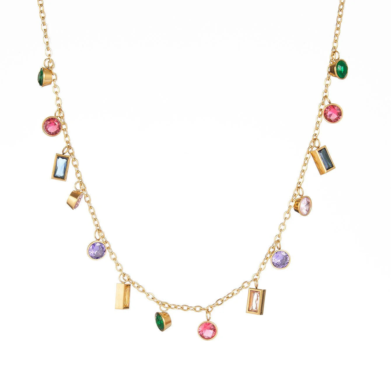 Titanium Steel Plated 18K Gold Inlaid Color Zircon Women's Tassel Necklace