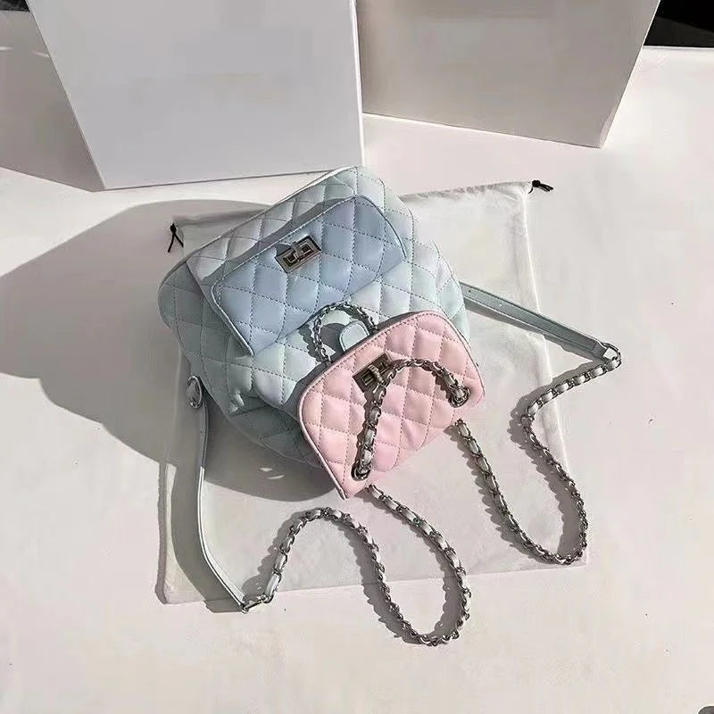 • Women's High-end Diamond Grid Contrasting Chain Backpack